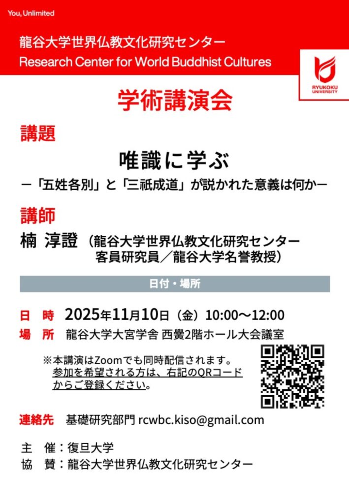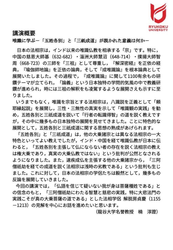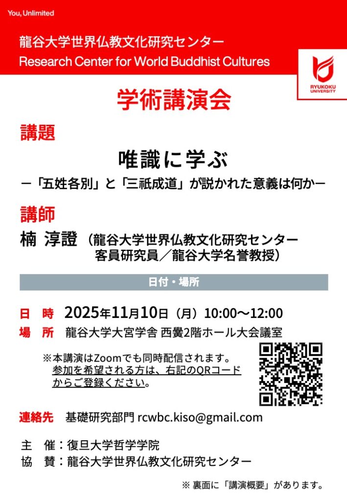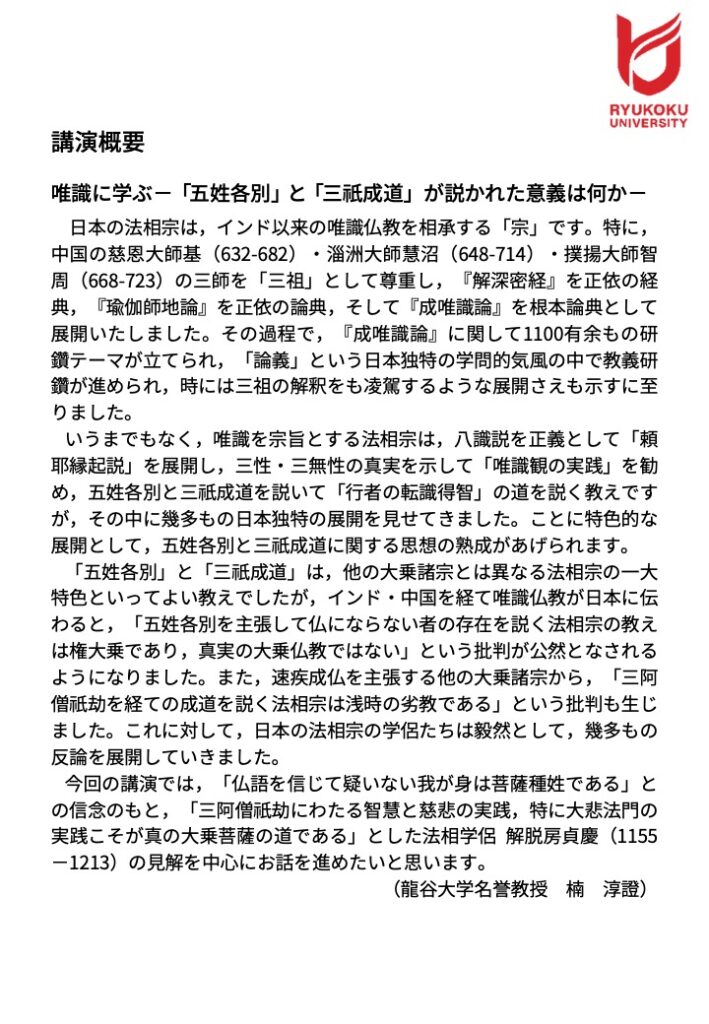 学術講演会「唯識に学ぶ—「五姓各別」と「三祇成道」が説かれた意義は何か—」