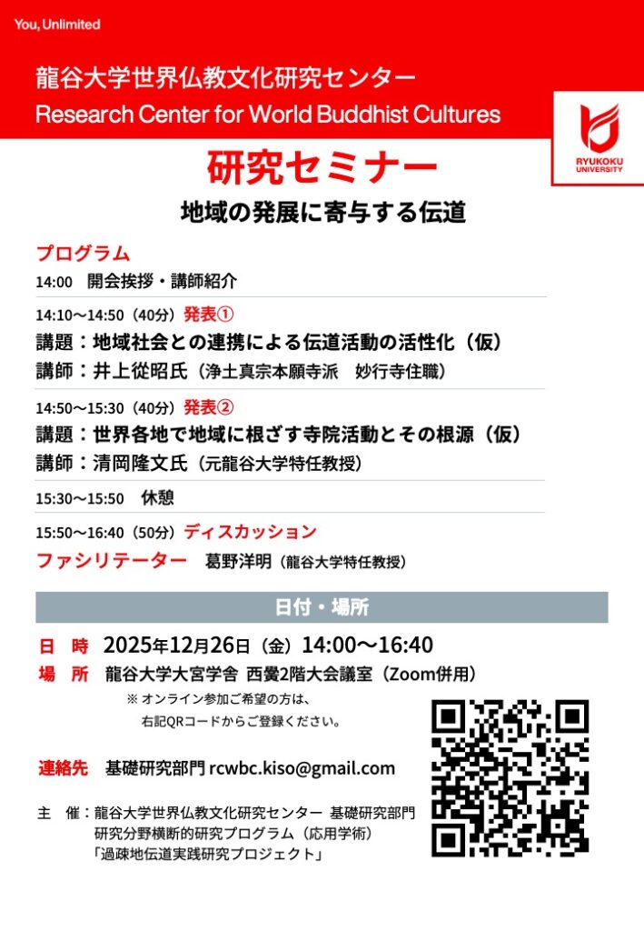 主 催:龍谷大学世界仏教文化研究センター 基礎研究部門