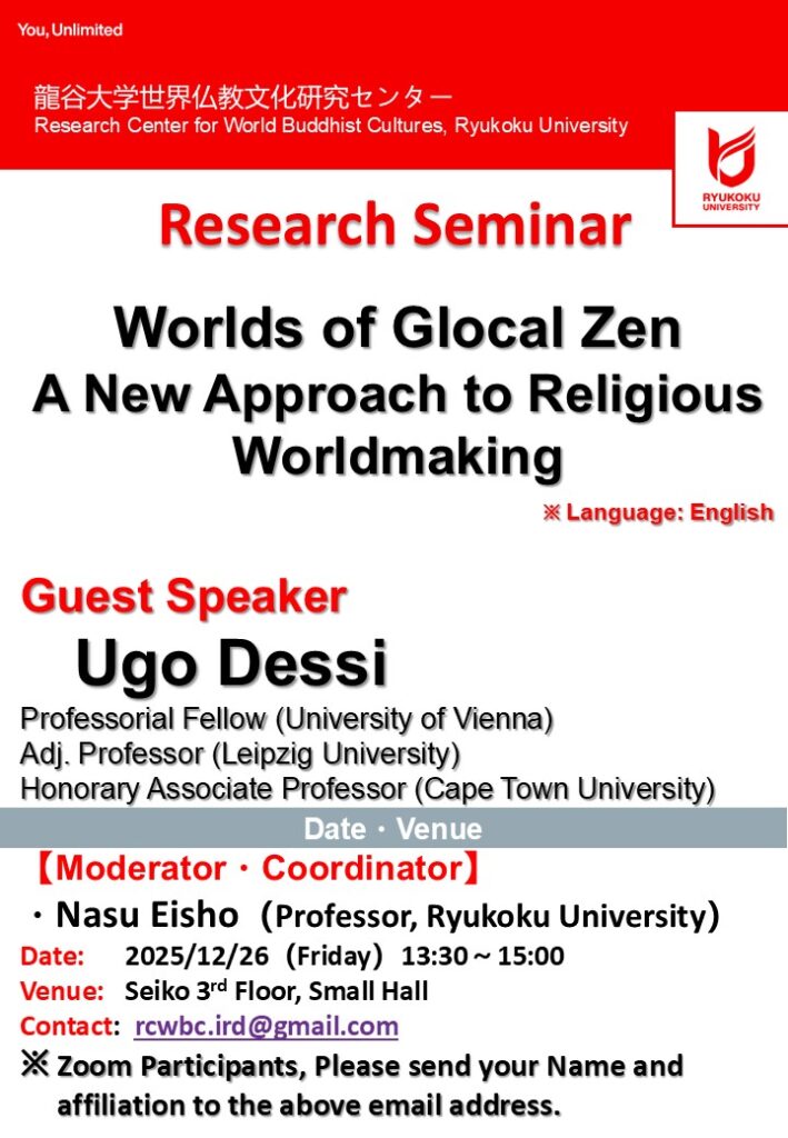 【研究セミナー】 Worlds of Glocal Zen: A New Approach to Religious Worldmaking(グローカル禅の世界:宗教的世界形成への新たなアプローチ) 【世界仏教文化研究センター 国際研究部門】