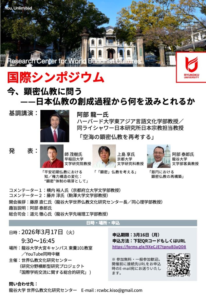 - 主催:世界仏教文化研究センター(研究分野横断型研究プロジェクト「国際学術交流に関する総合的研究」)