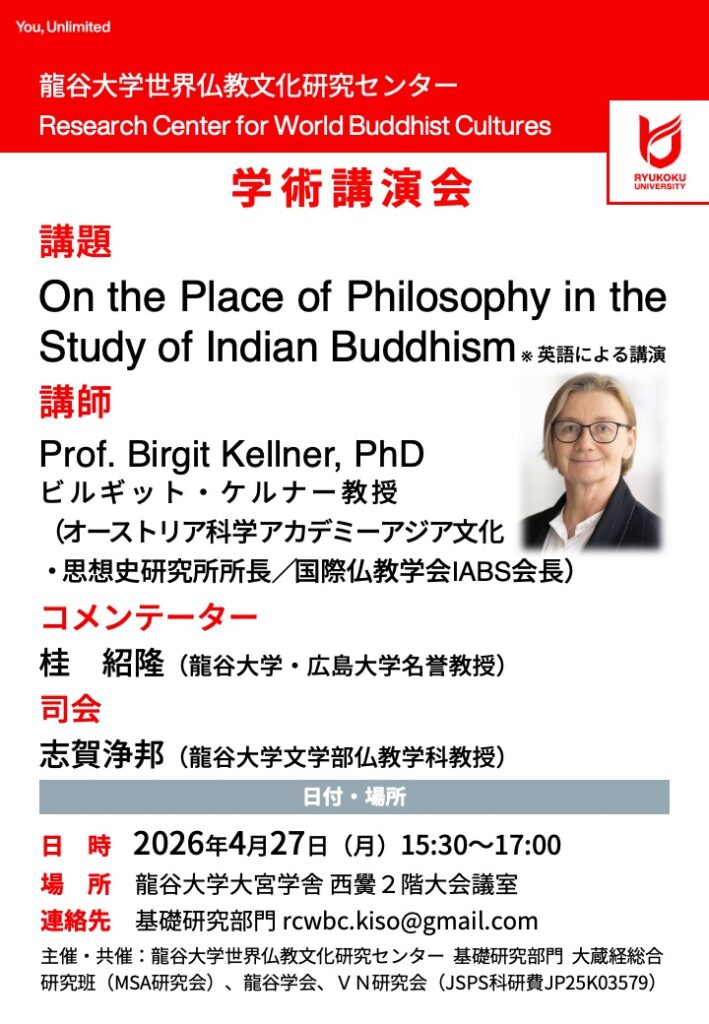 学術講演会「On the Place of Philosophy in the Study of Indian Buddhism」【世界仏教文化研究センター 基礎研究部門】
